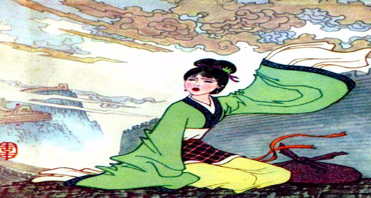 相傳嘉山腳下有一姜姓老者,生有一女,取名孟姜。孟姜成人后,一日在屋后小池塘里洗澡,被逃長城役而路過此地的范喜郎偷窺。兩人一見傾心,私訂終身。不想新婚燕爾,范喜郎還是被官府抓走,押送邊關修筑長城。由于不堪重勞,范喜郎很快死去,并被填埋在長城之下。孟姜在家天天望夫歸來。過數(shù)年,孟姜決心親往長城尋覓,哭倒長城,獲夫骸骨,背負還鄉(xiāng),死于返鄉(xiāng)途中。鄉(xiāng)人感其事跡,修廟供奉不絕。