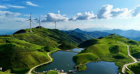 高聳入云的“大風(fēng)車”沿著山脊蜿蜒數(shù)百公里,高聳入云,猶如一條條巨龍騰空遠去,蔚為壯觀。