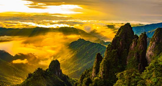 天臺峰,又稱天臺第一峰,被譽(yù)為“中南第一險”,垂直落差達(dá)300米。登頂可俯瞰深谷,環(huán)顧四周則山峰如海浪般壯觀。有言“不登第一險,不曾見莽山”。此外,天臺峰也是瑤民求雨之地,相傳古時百姓在此祭拜并扔下黑狗后,即降暴雨,此后求雨多靈驗(yàn)。