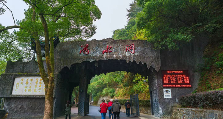滴水洞長(zhǎng)約2.8公里,洞內(nèi)有小溪,曲曲彎彎,幽壑口朝東北而開。小溪沿岸林木繁茂,挺拔的松林中夾雜著茂密的楠竹,而上百種野花漫山遍野地生長(zhǎng)著。這里的珍貴林木有銀杏、女貞、鐵樹等30多種,這里的花卉有映山紅、臘梅、芙蓉、月季、菊花等上百種,這里的珍貴藥材有金銀花、甘草、沉香、白果等20余種,境幽景優(yōu)是滴水洞幽壑的一大特點(diǎn),人在景中如置身仙境。滴水洞正式對(duì)外開放,并陸續(xù)修造了許多旅游景點(diǎn)與設(shè)施。滴水洞門樓,依山造勢(shì),頂部垂著深灰色的石鐘乳,中覆著紫藤、絡(luò)石、烏蘿,古趣盎然,上題“滴水洞天”4個(gè)朱紅大字。門樓建在水濱崖邊,韶山水庫(kù)波光粼粼,巖邊松柏勁拔,給游人以先聲奪人之感;加上守衛(wèi)者仍保留全副武裝,仿佛毛澤東仍在洞中安歇。進(jìn)得門樓,臨水一亭翼然,倚欄俯仰,只見(jiàn)山風(fēng)拂面;又見(jiàn)游道右側(cè)山巖石壁上,倏然從松樹間躍出靈氣飛動(dòng)的“滴水洞”3字,正是毛澤東的手跡。道邊的黑色山體上,嵌著一塊塊名人留言的青石碑。漫步滴水洞游道,仿如置身詩(shī)情畫意中,松與竹,青蔥得癢人心肺,山花、野鳥、人面、歌聲,使人陶醉。